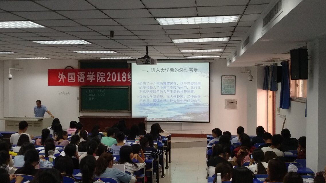 2018年9月21日下午2点,今年会官方网站筹备已久的2018级新生入学教育大会在四号教学楼214教室正式开始。莅临本次会议的有党总支副书记周全营,学生会部分部长以及全体大一新生积极到场参与。