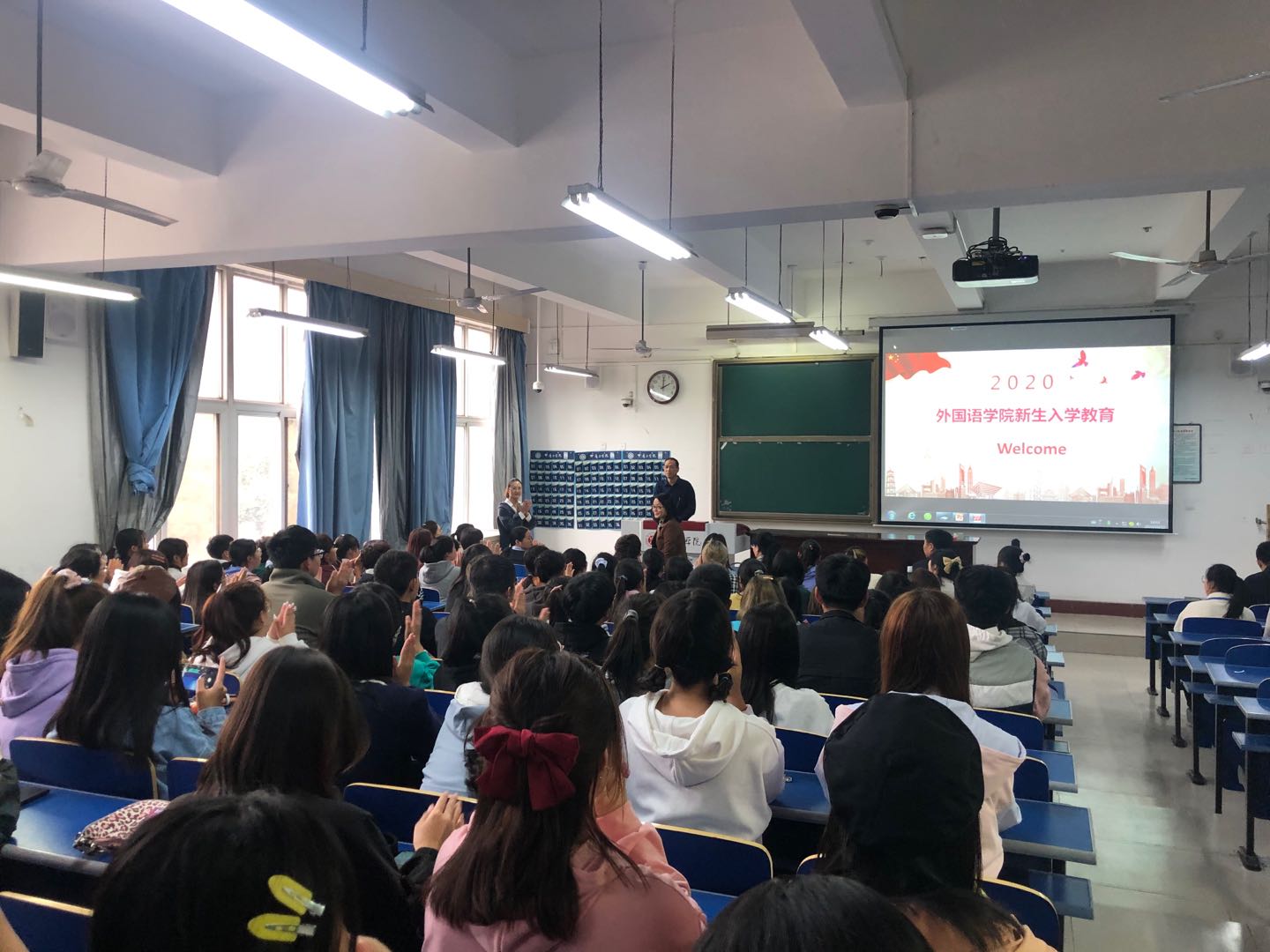 会议开始,党委副书记周全营代表今年会官方网站对2020级新生的到来表示热烈欢迎并进行以“高考不是终点”为主题的讲话,通过学习方法、自我管理等方面对同学们提出建议;在校生代表日语182班易淑悦及新生代表汉语201班郭雨蝶的发言句句流露真情实感,字字体现今年会官方网站学生风采;学工办主任葛士阳从国家宪法教育、社会主义核心价值观教育、专业学业教育、诚信教育等八个方面对新生进行入学教育。