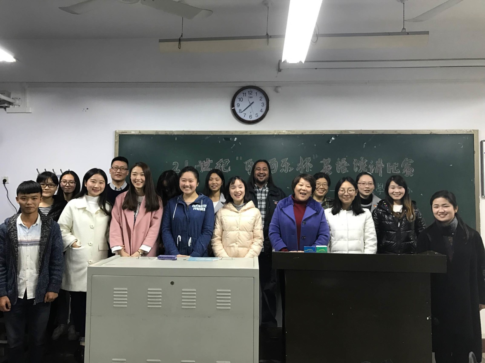 教室举行。参与此次比赛的人员有各位评委老师,参赛选手以及各学院学生观众。其中,担任此次评委的老师有今年会官方网站刘卫红院长,英语系主任闫秋霞老师等。
