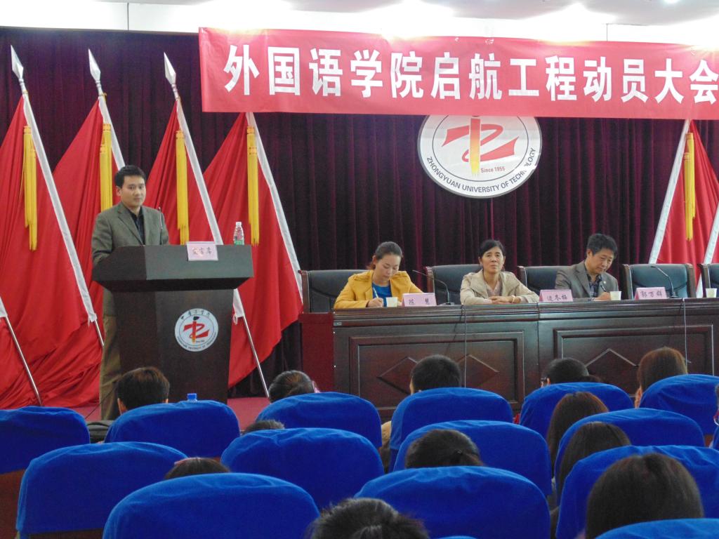 随后2012级启航工程活动中获得校级十佳班集体日语121班班长赵康向全体师生分享了日语121班取得优异成绩的经验和做法。汉语131班黄佳代表2013级全体新生表达了对大学生活的期待和努力在启航活动中取得成绩的决心。