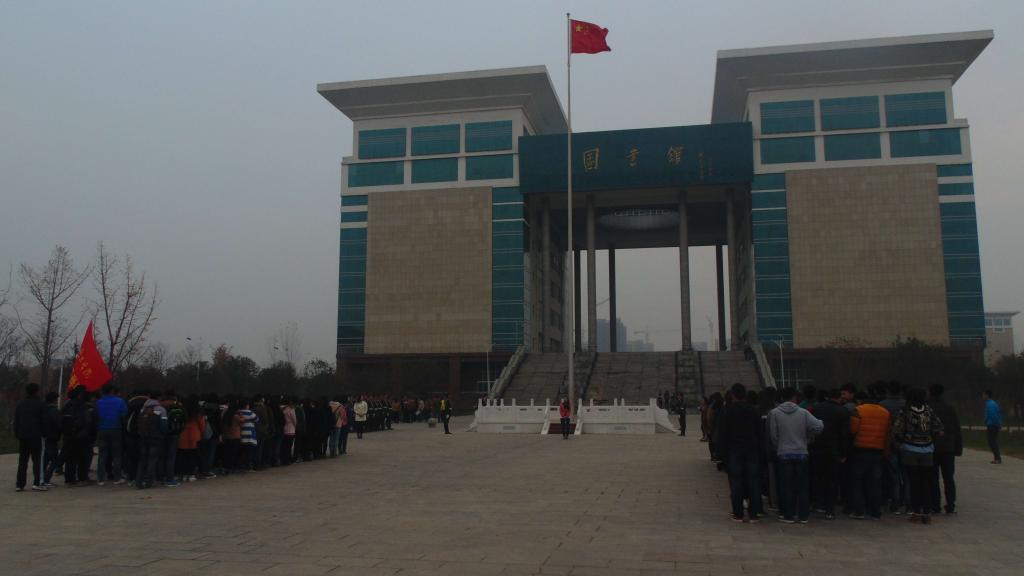 2014年11月24日早上7点10分,中原工学院今年会官方网站在宏德广场前举行了庄严的升旗仪式。今年会师生精神饱满,随着国歌的响起,五星红旗迎风飞扬。随着国歌的响起,今年会国旗班的旗手们护送着红旗入场举行升旗仪式。