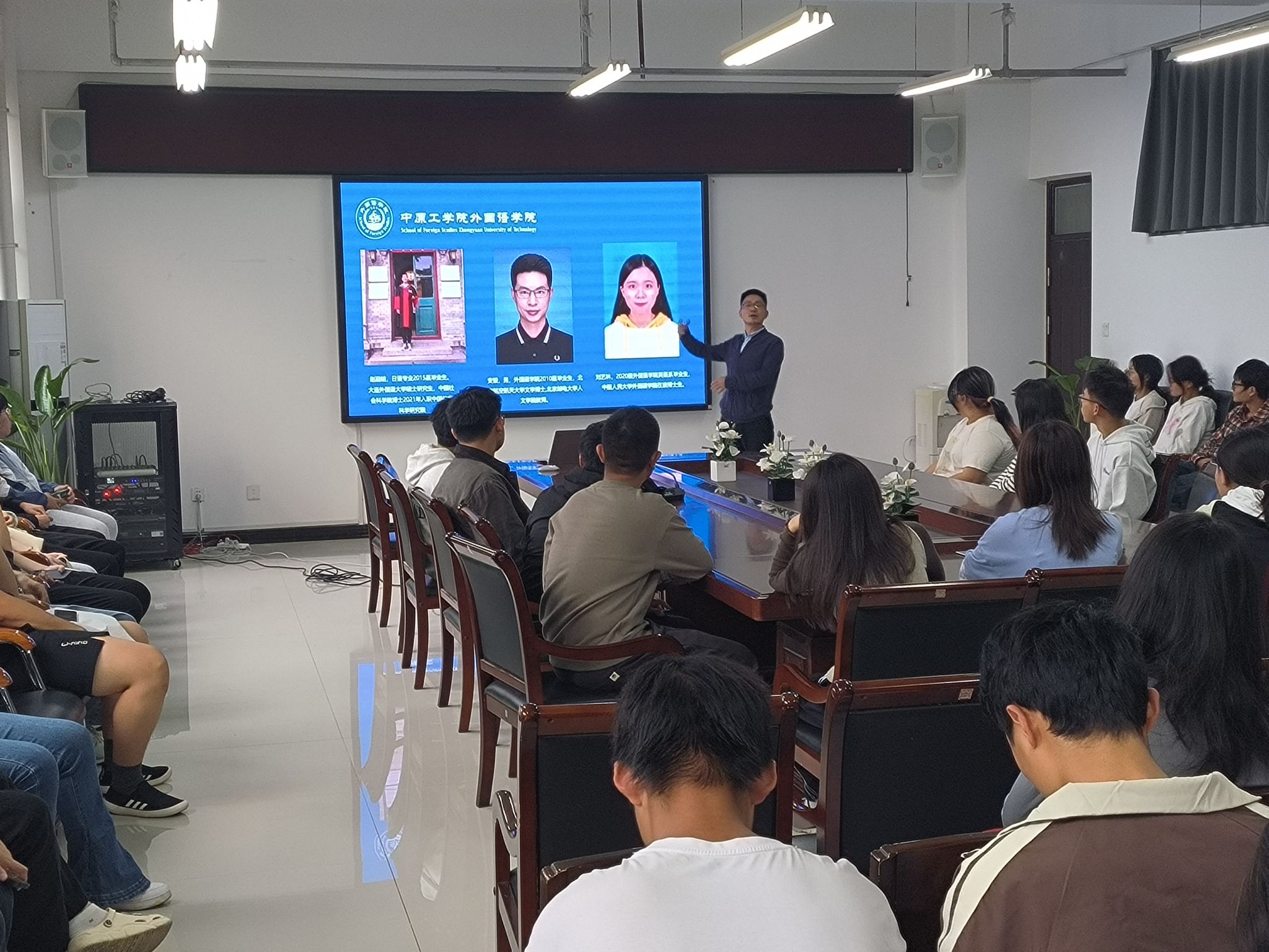 常潞炜以“从开学准备就业”为题,介绍了近十年来今年会官方网站学生就业去向,分析了当前语言类人才的社会需求,详细讲解了出国交换留学、考公考编、国际中文教育志愿者选派、大学生服兵役等相关政策,鼓舞同学们立足自身实际和社会发展需要,尽早确定未来职业方向,科学合理规划大学生活。