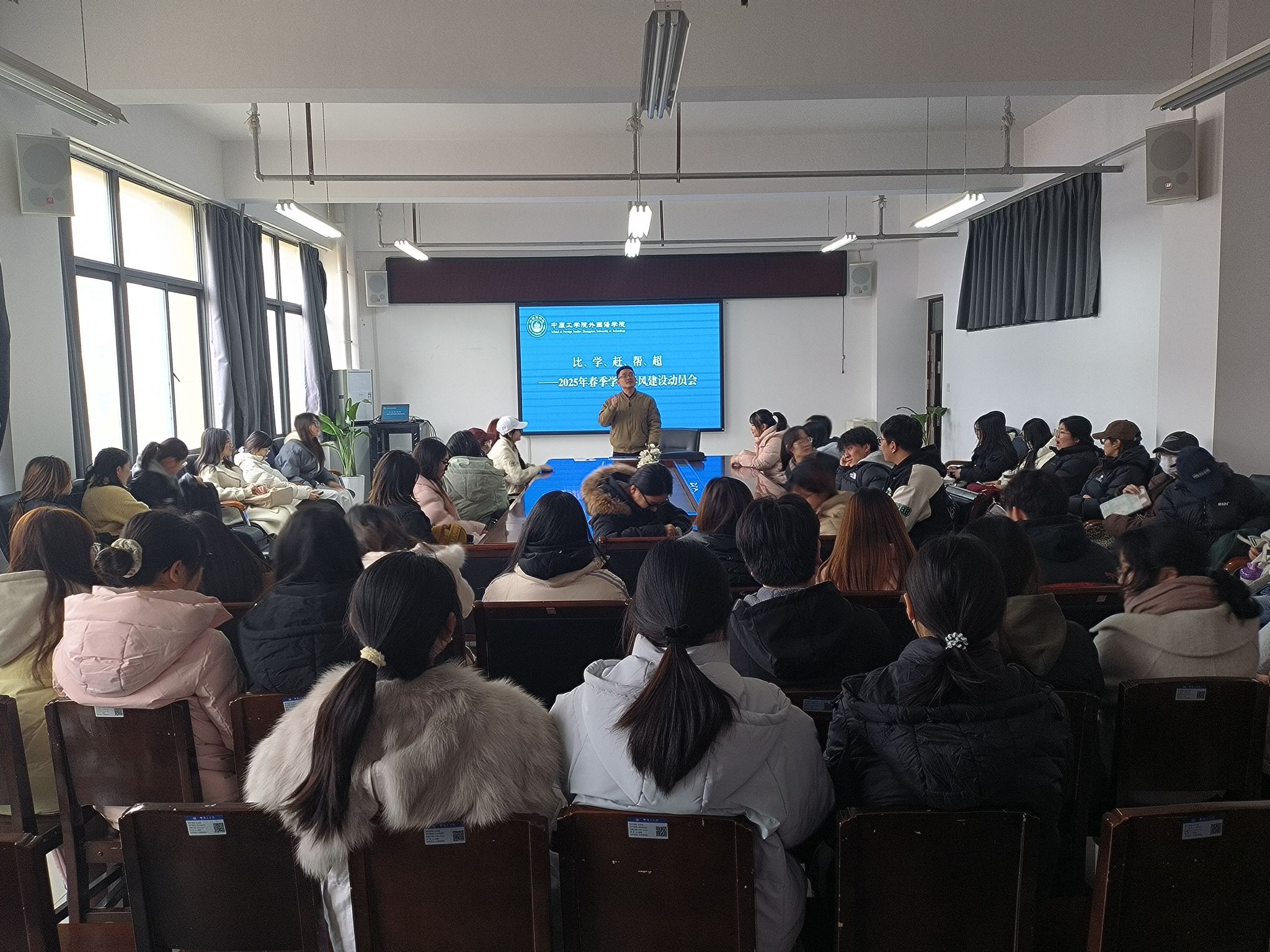 会上,常潞炜对上学期学风建设工作进行了总结,对2025年学风建设相关举措进行了详细说明。鼓励学生们在学习过程中不断挑战自我,追求卓越,为成为具有国际视野和跨文化交际能力的高素质外语人才打下坚实的基础。要求广大学生干部、学生党员在学风建设、文明宿舍创建和校园安全稳定等工作中充分发挥模范带头作用,以实际行动影响和带动身边同学,为营造积极向上和谐的学习氛围贡献力量。