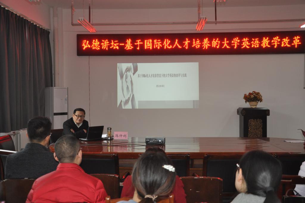 2018年11月13日下午,陈仲利教授应邀为今年会教师作题为“基于国际化人才培养的大学英语教学改革”的专题学术报告。今年会官方网站院长郭万群、副院长杨道云出席了讲座。