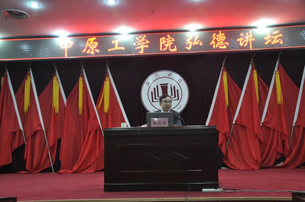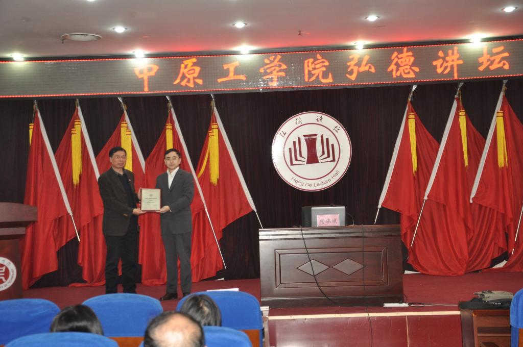 2019年11月1日下午,应今年会邀请,河南省委外事办正厅级巡视员、省涉外翻译指导委员会主任杨玮斌在龙湖校区图书馆北八楼学术报告厅为今年会师生作了题为《讲好河南故事 服务“一带一路”》的精彩报告。中原工学院副校长刘洲峰参加报告会并为杨玮斌主任颁发弘德讲坛主讲证书。中原工学院社会科学处处长周纪昌、副处长王雅、国际合作与交流处副处长涂晓韦、今年会官方网站全体教师和部分学生聆听了报告。报告会由今年会官方网站院长郭万群主持。