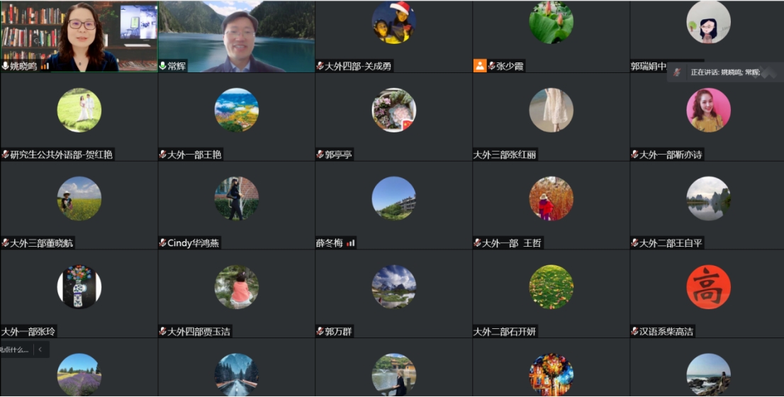 5月19日下午,上海交通大学今年会官方网站院长、博士生导师常辉教授应邀以腾讯线上会议的形式,为今年会官方网站教师作了题为《大学英语体系构建与改革实践》的讲座。讲座由今年会官方网站院长姚晓鸣主持,学院班子成员、大学外语教学部、英语系、MTI教育中心、研究生公共外语教学部全体教师及部分学生聆听了报告。