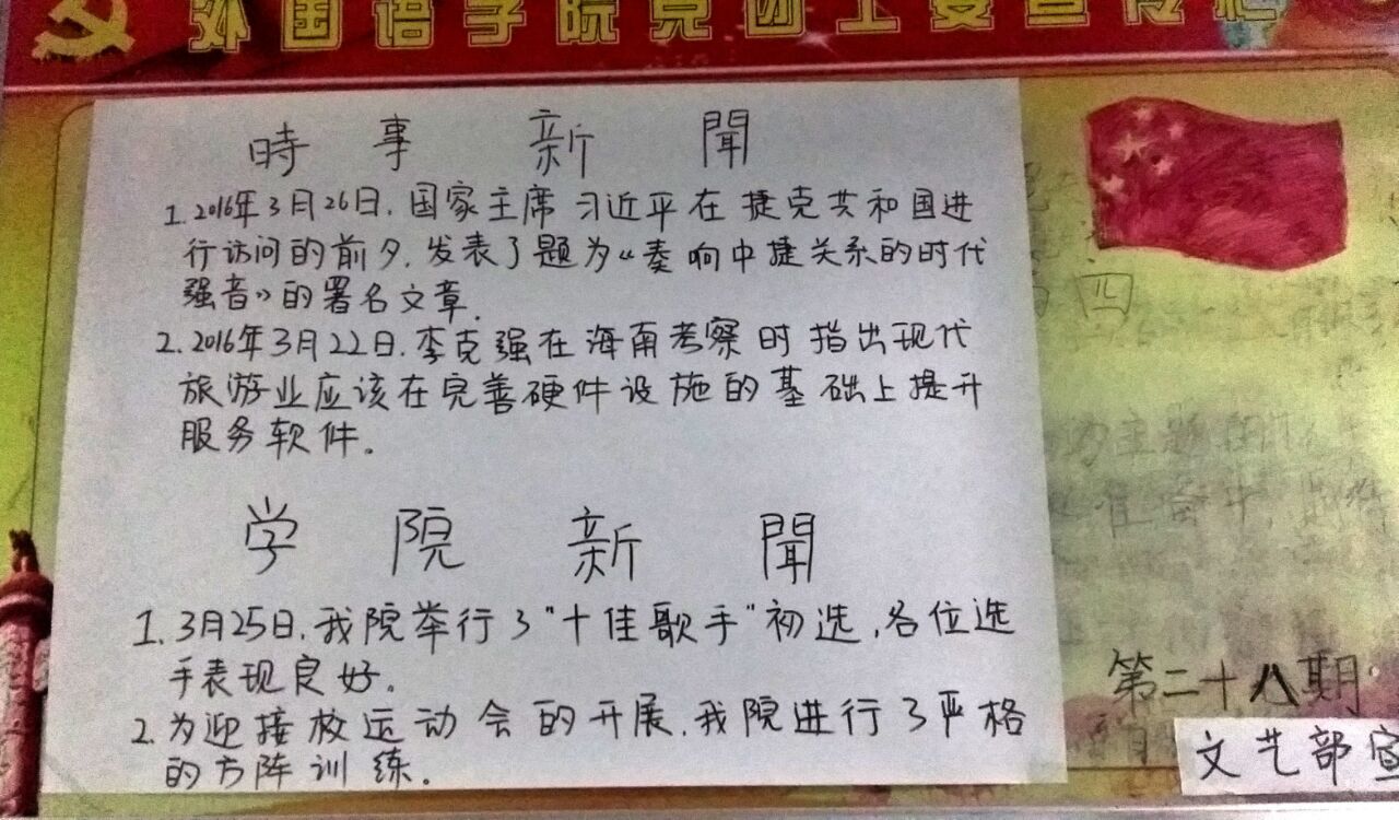 学院活动:3月25日今年会举行了十佳歌手初选,选手表现良好,现场气氛活跃。今年会正积极进行方队训练,希望在校运动会中更好的展现外院风彩。