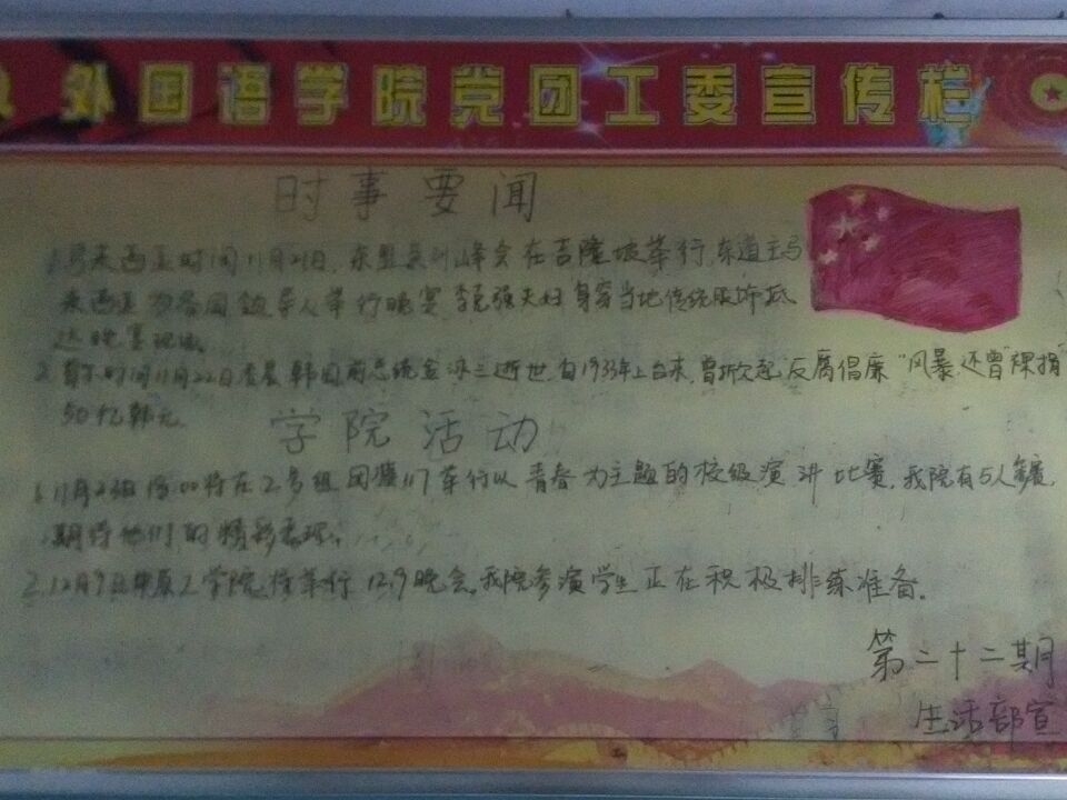 1. 11月23日18点将在2号组团楼117举行以青春为主题的校级演讲比赛,今年会有五人参赛,期待他们的精彩表现。