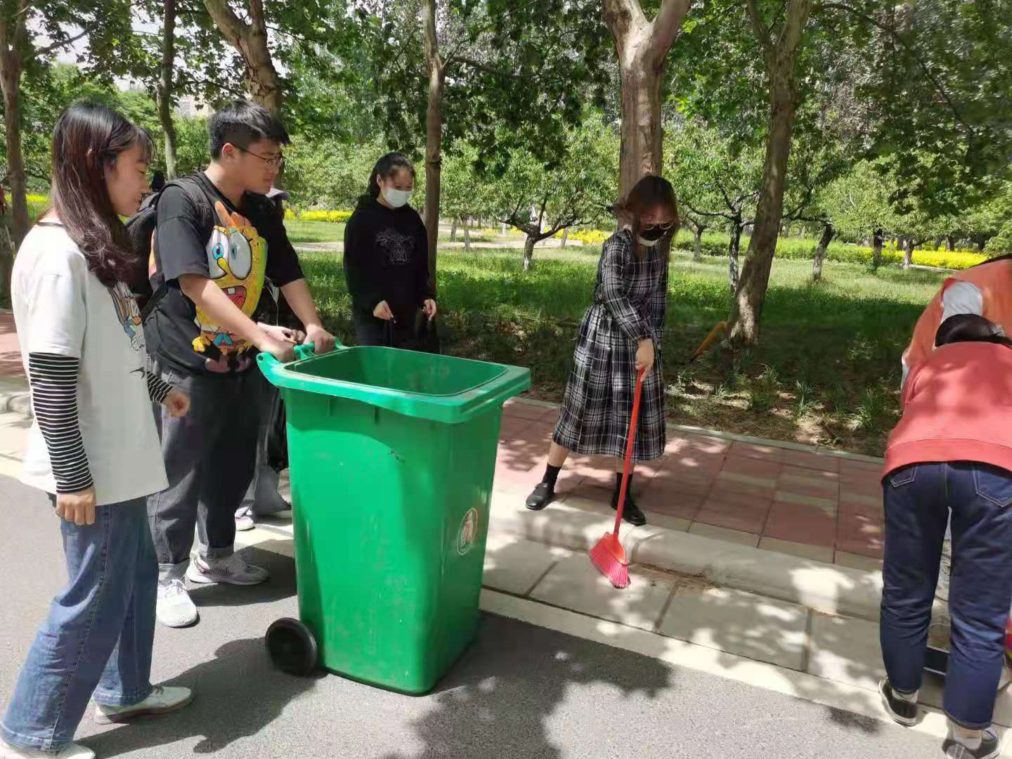 学生党员们顶着高温和大风天气,手持劳动工具清扫垃圾,不怕脏,不怕累,不避重就轻,仔细清扫每一个角落,圆满完成了本次劳动实践活动。