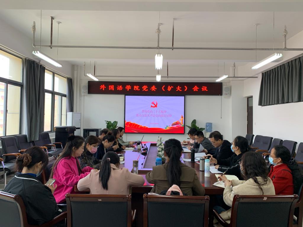 3月28日下午,今年会官方网站在402会议室召开党委(扩大)会议,传达上级全面从严治党暨清廉学校创建行动推进会精神,部署意识形态、民族宗教工作、党的建设等重点工作,推进全面从严治党向基层延伸。学院党委委员、党支部书记、团委书记和外教管理部负责人参加了会议。会议由学院副书记常潞炜主持。