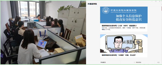 通过学习,全体师生了解了当前网络诈骗主要是指互联网上的一系列欺骗行为,如虚假陈述、恶意软件、网络钓鱼、账号盗窃、杀猪盘诈骗等,同时也了解了新型的AI诈骗骗术,如换脸、拟音等,提醒大家警惕“钓鱼链接”“非法APP下载”、陌生短信和点击不明网址等有害网络行为,引导师生正确应对网络安全风险,提升自身网络安全防护技能和网络安全知识。