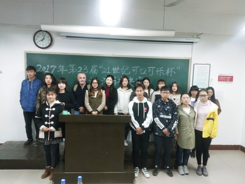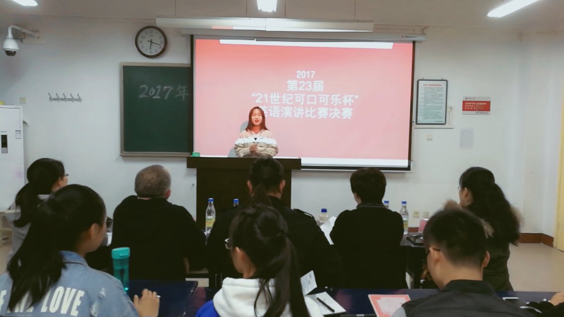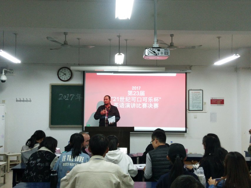 为促进今年会英语学科素质教育的发展,激发同学们学习英语的热情,营造浓郁的英语学习氛围,展现当代大学生的青春风采,今年会官方网站于2017年11月14日晚六点在11号楼425教室举行了第二十三届“21世纪·可口可乐杯”英语演讲比赛。Donald、Frank、余天敏、刘丽、郝玉娟五位老师应邀作为评委出席了本次比赛,各位同学踊跃参与其中。