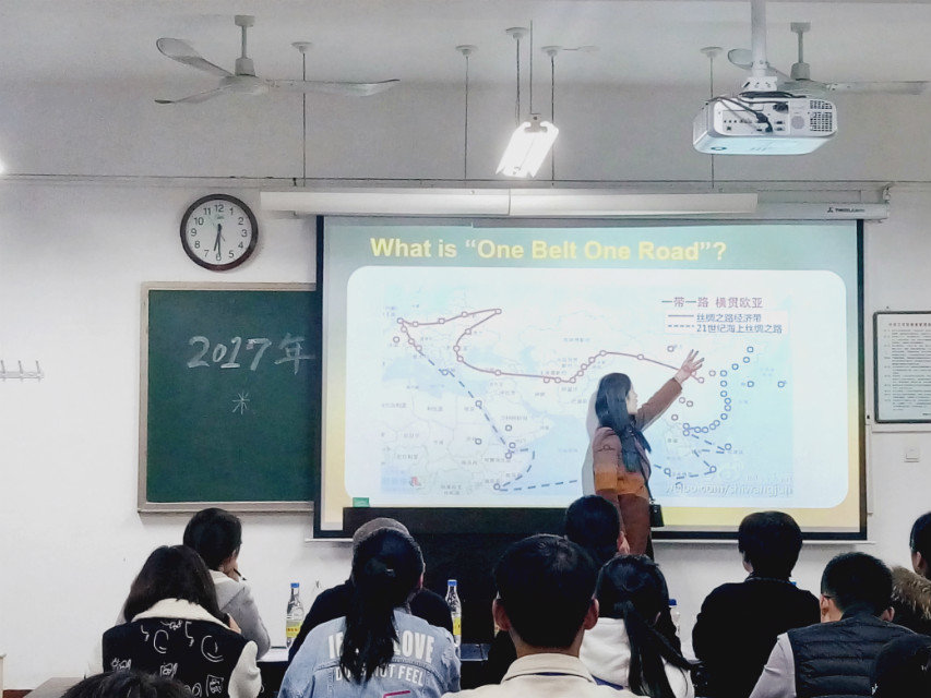 比赛以“Belt and Road: China and the world”为主题,分为“命题演讲、即兴演讲、英语才艺表演”三个环节。比赛伊始,参赛选手依次登场,她们思路清晰,语言流畅,或幽默诙谐或严谨端庄,更有选手现场献声,赢得了观众的阵阵掌声。其后的评审提问环节中,参赛选手对答如流,充分阐述了自己的观点。