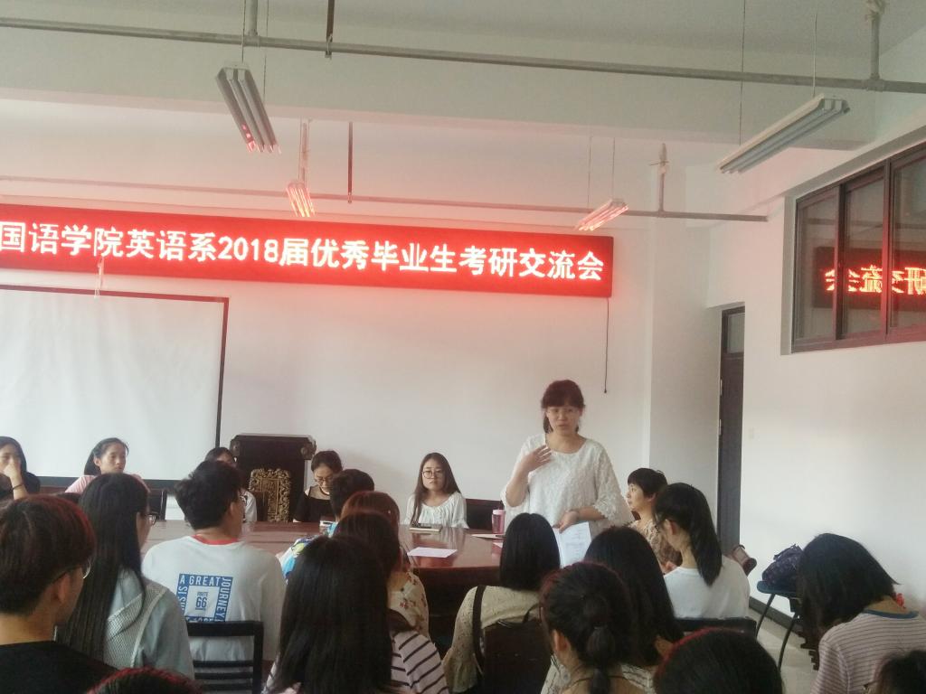 本次交流会由刘丽老师主持。首先,郭万群院长发表了讲话,简要介绍了今年会历年英语系的考研率,并表示,考研的同学如果有疑问或困难,可以向领导老师寻求帮助,今年会官方网站将是大家最坚强的后盾。