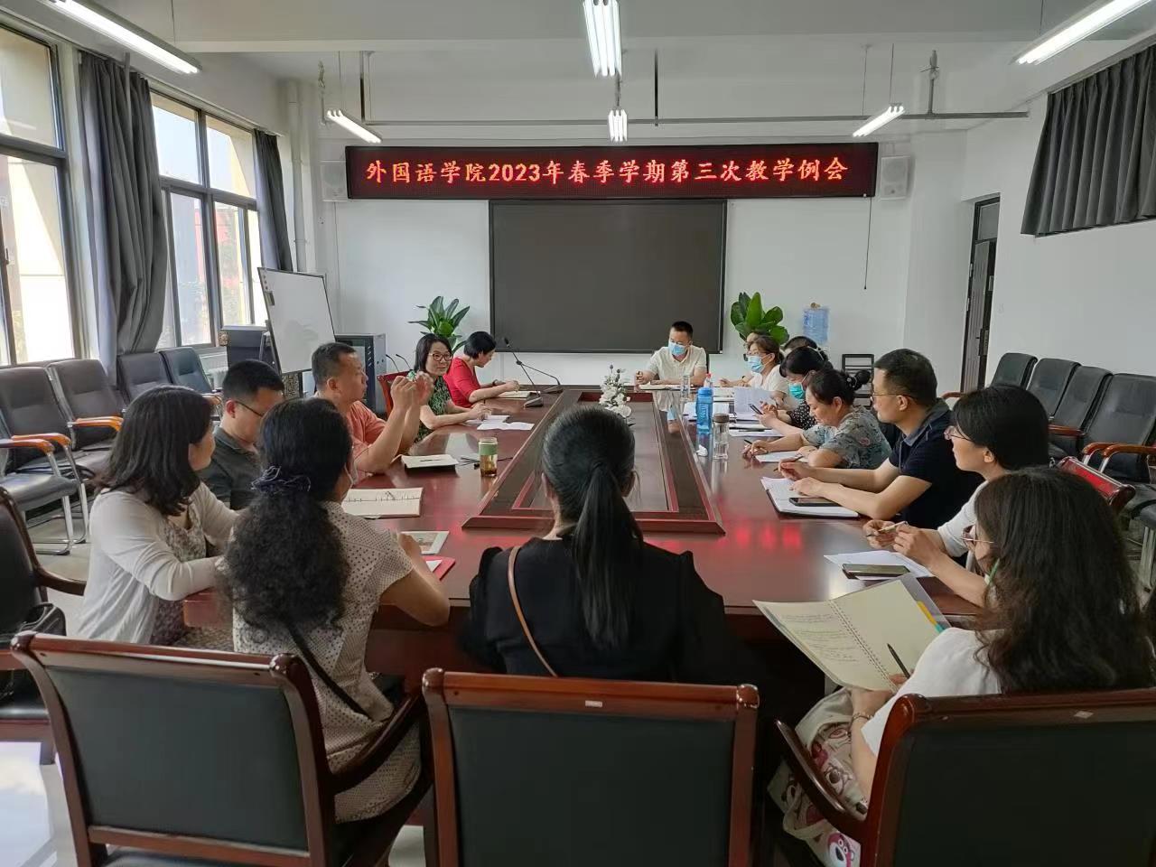 会上,各系部(中心)主任汇报了近期重点教学工作,包括教材征订、期末阅卷、师资、学生就业、毕业论文,并对存在的困难和问题进行交流。学院教学委员会副主任李向民传达了河南省“三进”工作推进会、教学大纲修订、专业改革方案和期末考试等本科理论教学相关工作。副院长薛冬梅强调重视实践教学相关资料收集归档工作,做好全国高校外语教学大赛河南赛区比赛的实施及服务、实验机房改造工作。副院长柴高洁鼓励教师积极申报各类项目,以便提升科研水平和更好服务研究生教学。副书记常潞炜提出做好学生就业工作。