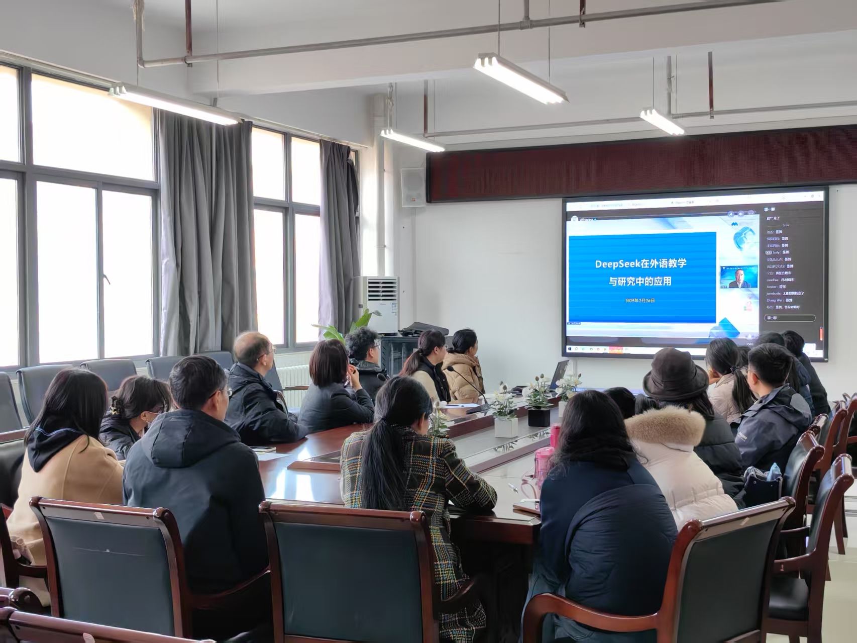 2 月 26 日下午,今年会官方网站组织教师集体观看了上海外国语大学冯庆华教授题为 “Deep Seek 在外语教学与研究中的应用” 的直播学术讲座。此次讲座是学院推动教学数字化转型的重要活动之一,旨在助力教师深入探寻人工智能技术在外语教学与研究领域的前沿应用,开拓智能化教学新路径。